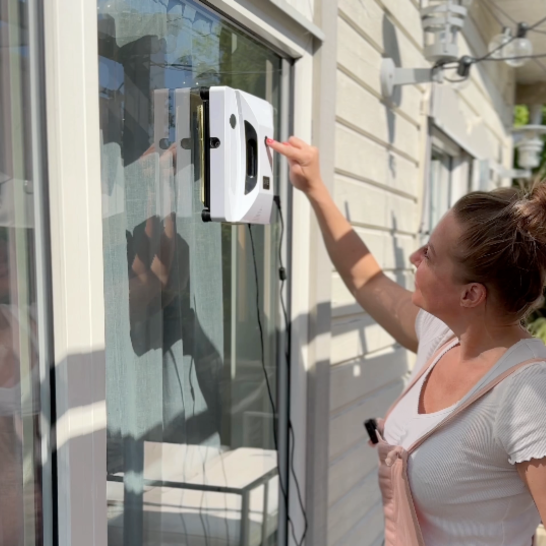 I trädgården, en robotgräsklippare, i huset två robotdammsugare. Varför skulle inte en fönsterputsrobot till fönstren? Snabb leverans, fick den inom 2 dagar. För att sätta enheten i drift så var det inget problem. Man placerar roboten på fönsterytan, den suger sig fast och börjar köra.