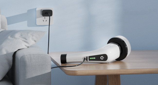 Dite Scrubber is powered by USB-C cable. Simply connect it to a USB port with the included cable to charge.