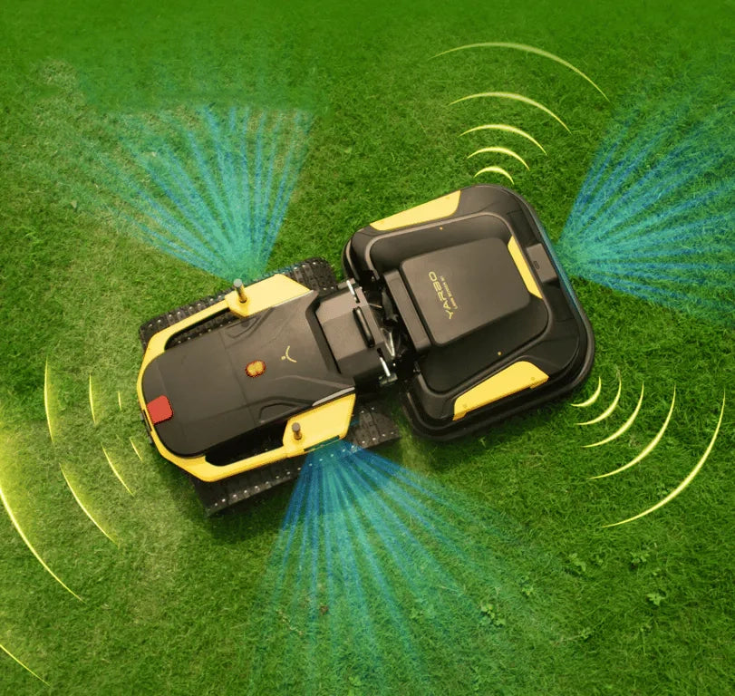 Yarbo Gräsklippare utmärker sig med sitt banbrytande system med binokulärkamera placerad framtill. Detta system efterliknar människans djupseende och har ett brett dynamiskt omfång som kan fånga exceptionella bilder under olika ljusförhållanden. Det erbjuder dessutom en vidvinkel på 130°, en stor F2.2-bländare och ultrahögupplösta bilder med 6 miljoner pixlar. Yarbos avancerade hinderundvikningsteknologi stöds även av två sidokameror, en robust trestegskollisionsbar som är helt inkapslad, och sex ultraljudsradar som ger 360-graders täckning runt Yarbo för att upptäcka hinder.