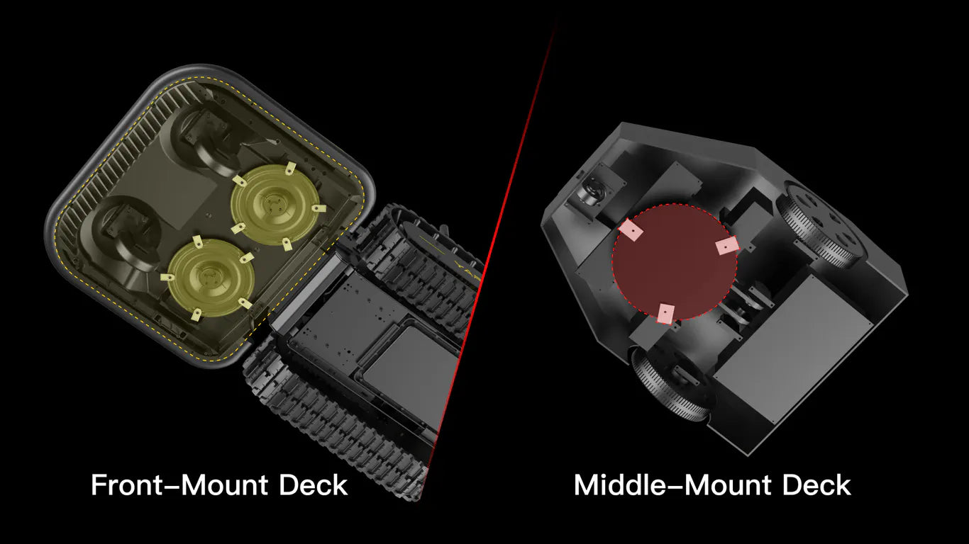 Yarbo Gräsklippare har ett avancerat frontmonterat däck som är förbättrat med ett förstärkt fjädersystem, vilket smart distribuerar vikten till kärnan. Denna innovativa design minskar avsevärt påverkan på gräset från kasthjulet och skapar en enhetligt frodig, mattliknande gräsmatta.