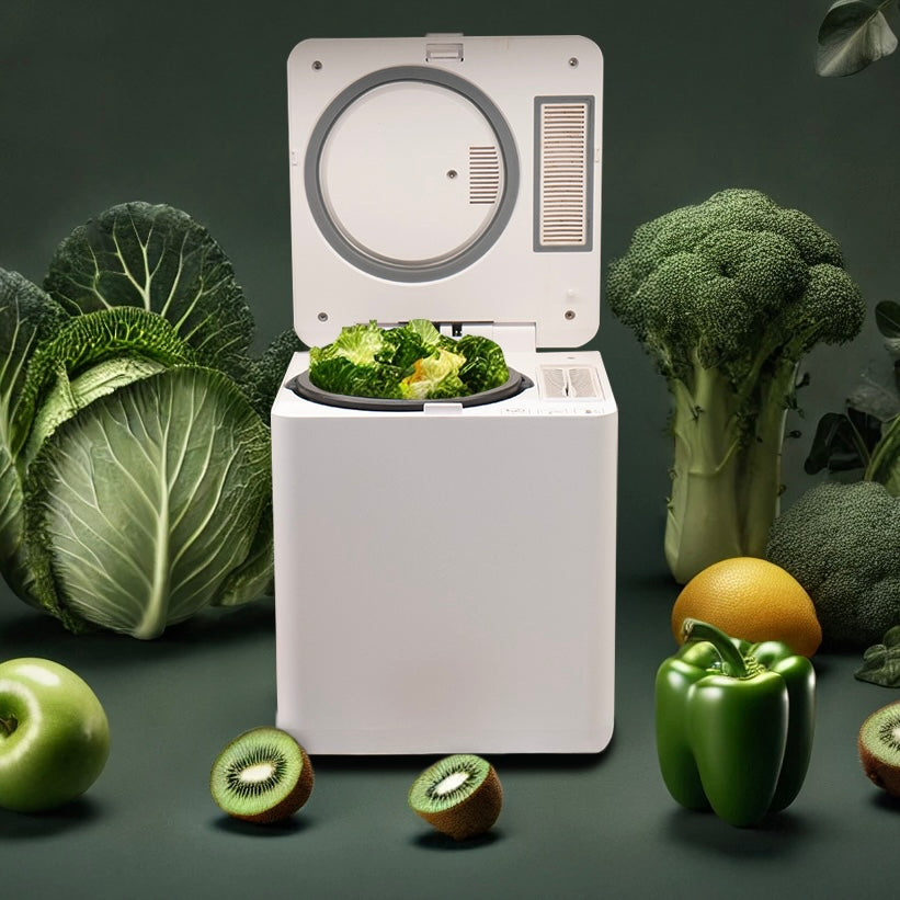 Den omvandlar matavfall till näringsrik jord direkt på plats, sparar transporter och minskar utsläpp från sopbilar.