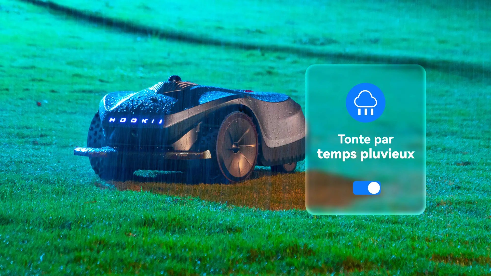 Pausar eller fortsätter klippningen vid regn – för smidig gräsvård utan avbrott.