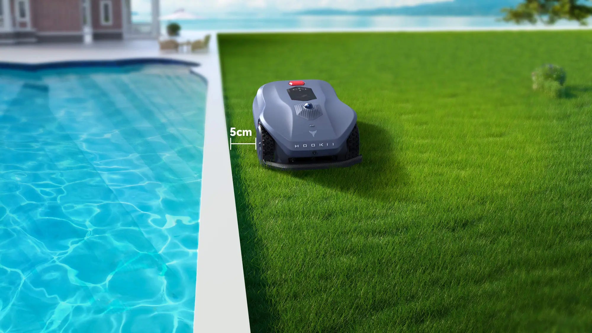 Neomow X-serien håller ett avstånd på 5 cm från gränser för exakt kantklippning och 10 cm från hinder, vilket säkerställer noggrann gräsklippning.