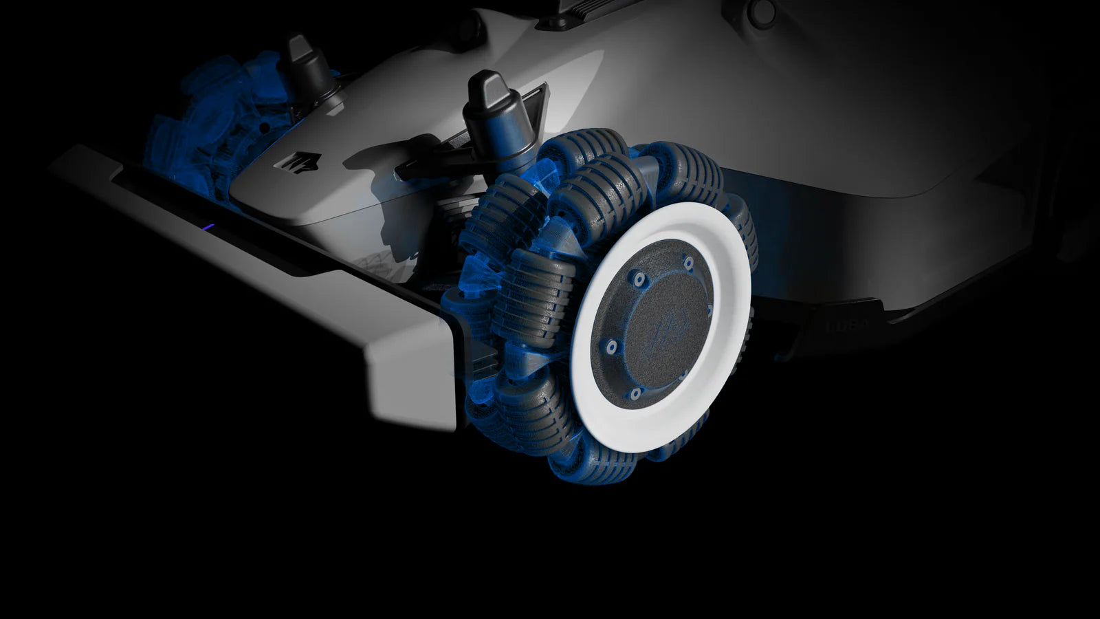 LUBA är utrustad med omni-hjul, vilket möjliggör smidiga svängar på plats utan att skada gräset.